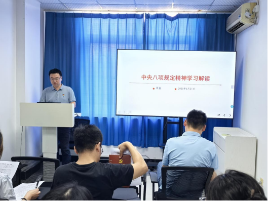 会议首先由支部书记狄堃领学第一议题,系统解读了《中央八项规定和"四风"问题》《党员干部应在日常生活中贯彻中央八项规定精神》文件精神。狄堃强调,中央八项规定是全面从严治党的重要抓手,党员干部要率先垂范,将规定要求内化于心、外化于行。