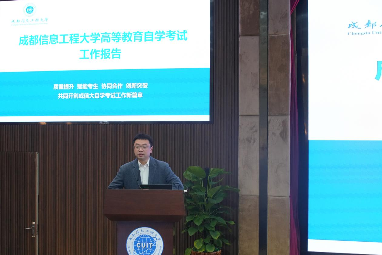 周鑫代表333体育作《质量提升、赋能考生、协同合作、创新突破共同开创成信大自学考试工作新篇章》工作报告。报告从三个方面对333体育2025年自学考试工作作出部署:一是从招生宣传、教学管理、数字化建设等方面总结2024年度学校自学考试工作有用经验。二是从公司产品规范、管理与质量提升、拓展助学平台等多方面对2025年学校自学考试发展提出了更高要求。三是从政策导向精准把握、合作机制创新构建等方面研判新时代发展态势,指明战略方向。