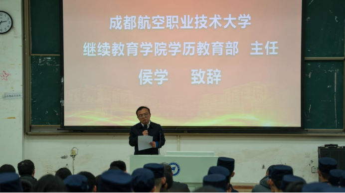 易平书记在随后的讲话中,代表学院向全体新生表示热烈欢迎,并对成都航空职业技术大学在合作中给予的支持表示感谢。他回顾了两校八年来合作办学取得的丰硕成果,并对新生提出三点期望:一是以“时不我待”的紧迫感抓好学习;二是以“舍我其谁”的责任感增强本领;三是以“永不言弃”的坚韧心克服难关。
