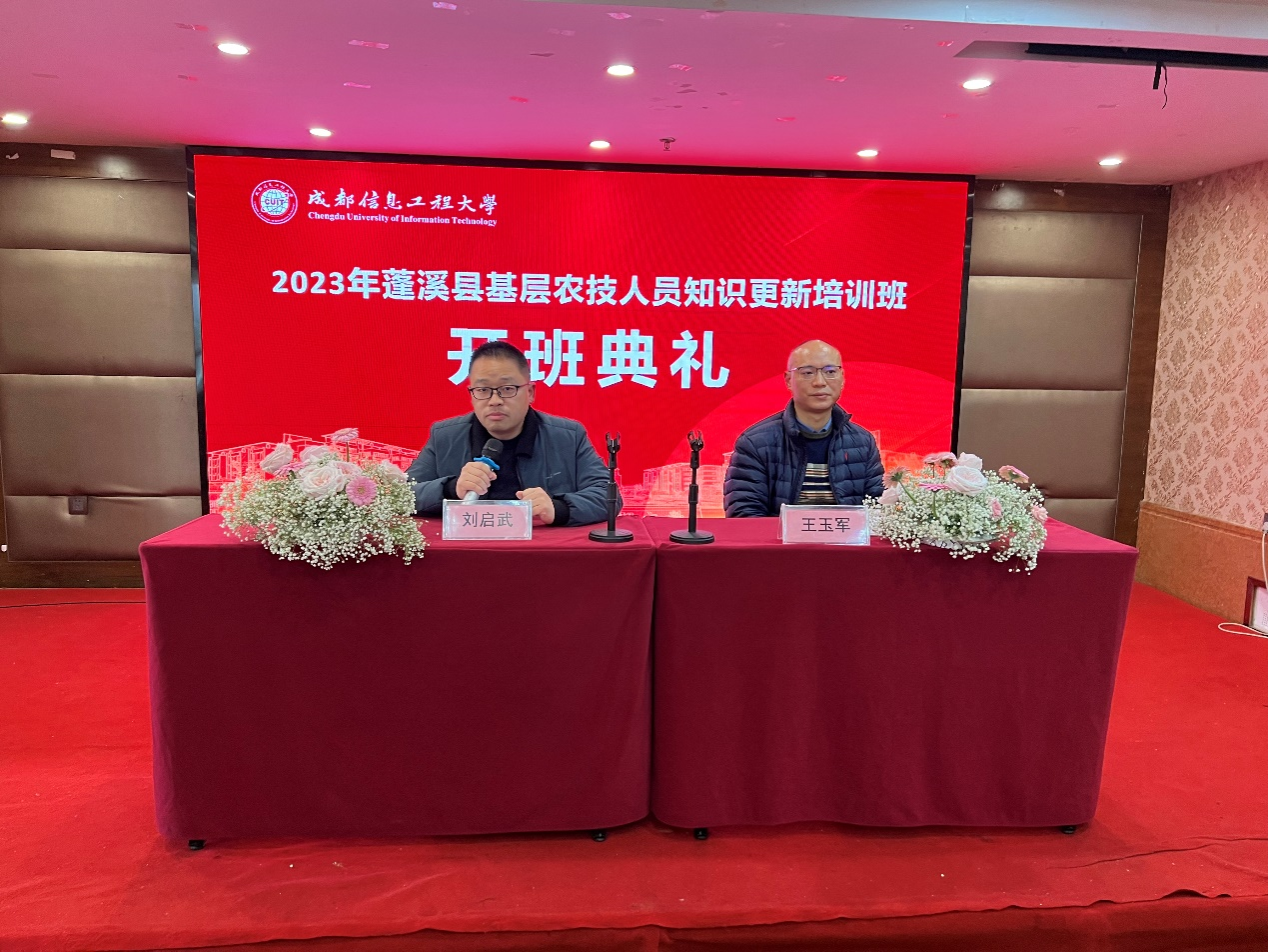 12月11日下午,由蓬溪县农业农村局主办,333体育官网承办的2023年蓬溪县基层农技人员知识更新培训班顺利开班。蓬溪县农业农村局总畜牧师刘启武、333体育官网培训中心主任助理王玉军出席开班典礼并致辞。