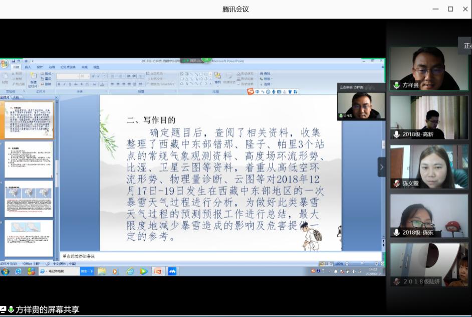根据333体育官网疫情防控工作部署,落实“员工不返校、停课不停学”的教学安排,6月12日学院对2018级成人高等教育大气科学专业函授班开展线上答辩工作,并顺利完成。